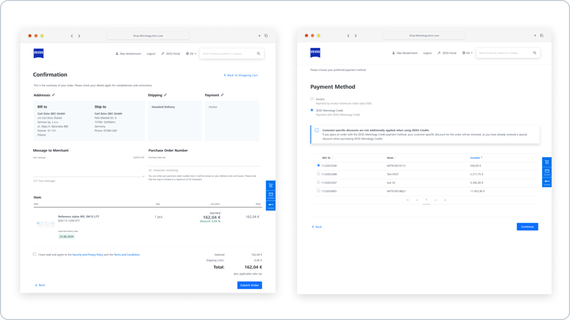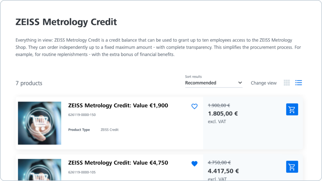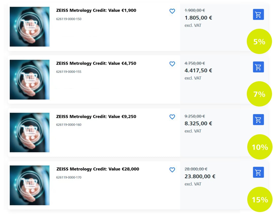 - ZEISS Metrology Credits can be used both in the ZEISS Metrology Shop and for orders by email.